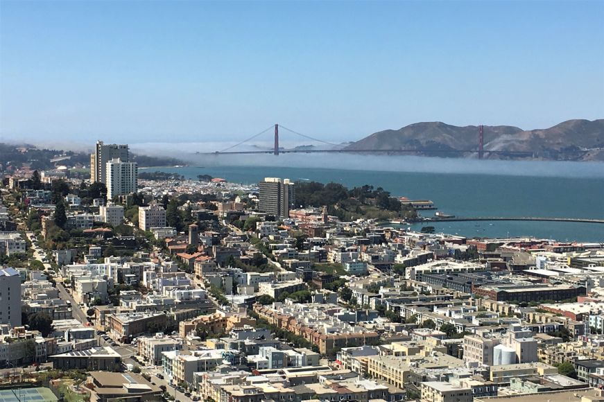 There's a 30-minute wait and $9 fee to ride the elevator, but the 360 degree views are worth it: the Golden Gate Bridge in the distance, towering over a haze of fog; the San Francisco skyline; the ferry boats crisscrossing the harbor on the way to Alcatraz.