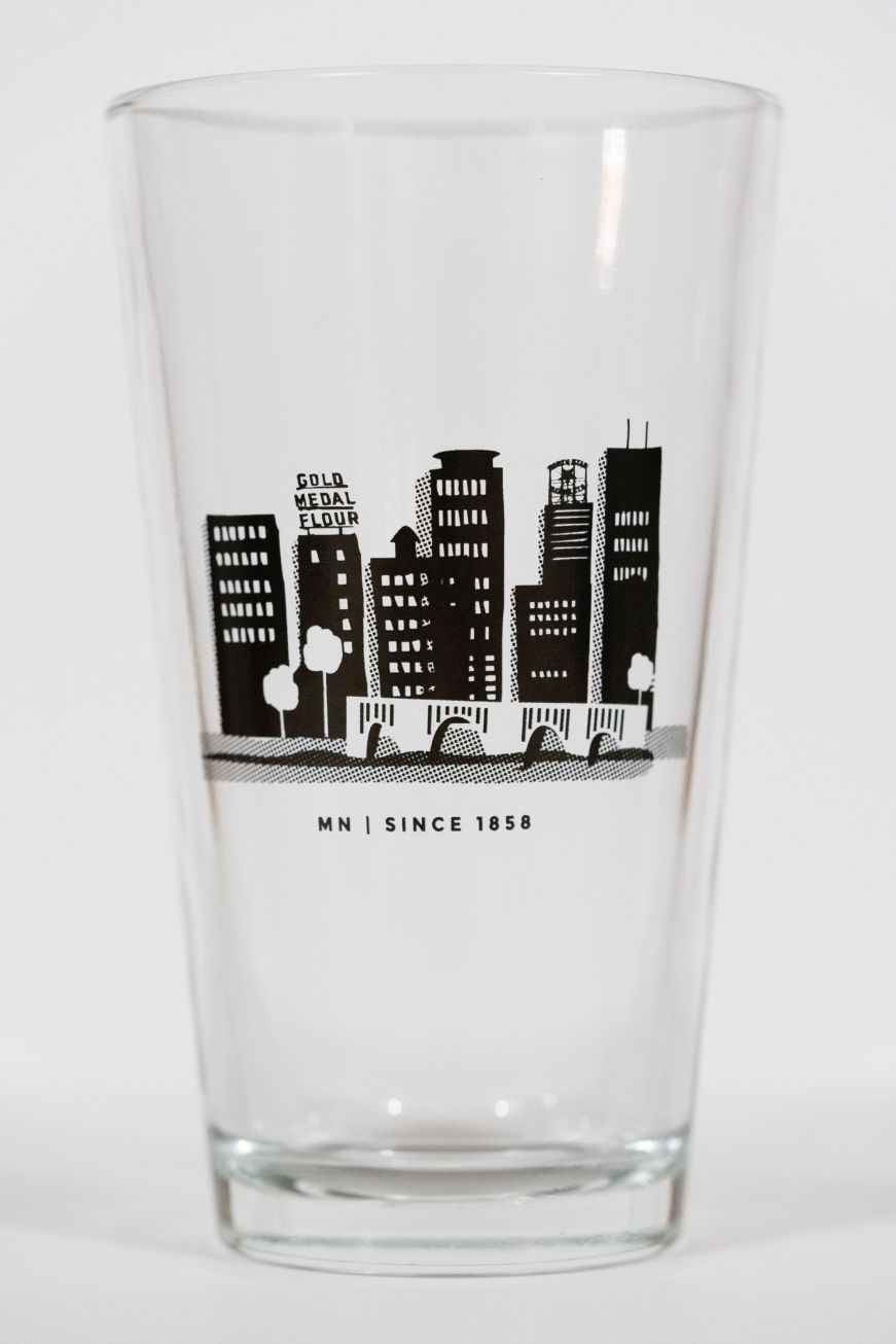 Sip local with Northern Goods pint glasses depicting the Minneapolis or St. Paul skylines, or Minnesota landmarks like Duluth's Aerial Lift Bridge. As an added bonus, seven percent of sales are donated to fighting for clean water in Minnesota and around the world. We have a pair of Minneapolis Skyline pint glasses that have held up well over the years—the screen-printed designs still look crisp. Northern Goods also sells Minnesota-themed coffee mugs, stickers, candles, artwork, apparel, and more.