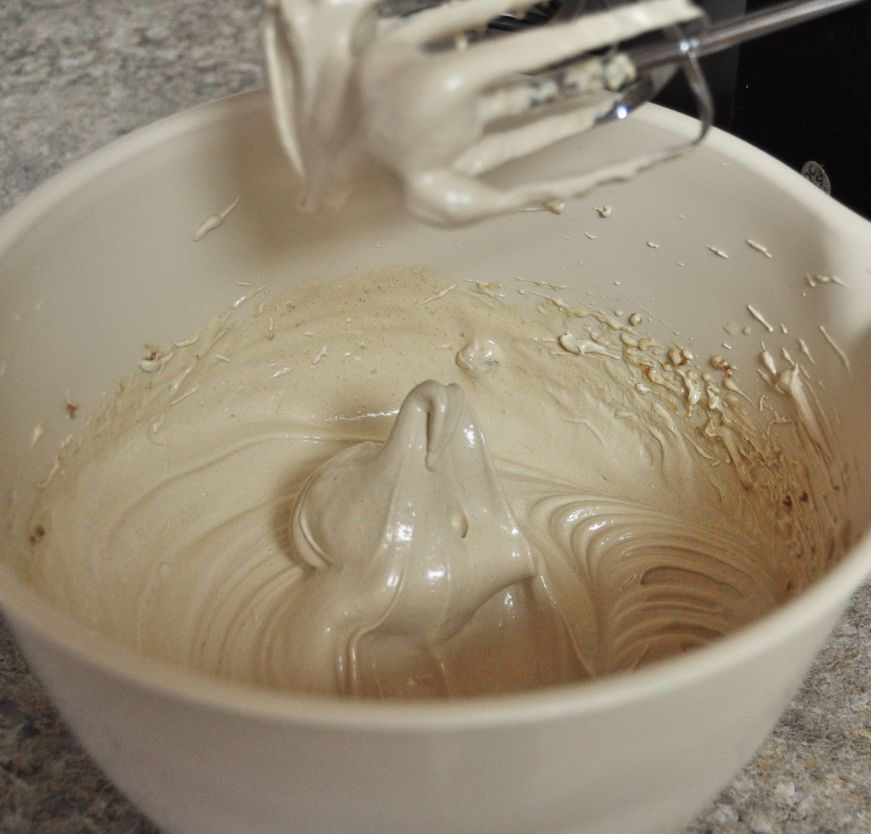 In a medium bowl, beat the egg whites with a hand mixer until foamy. Gradually add 1 cup brown sugar. Beat until the meringue is glossy and can hold soft peaks.