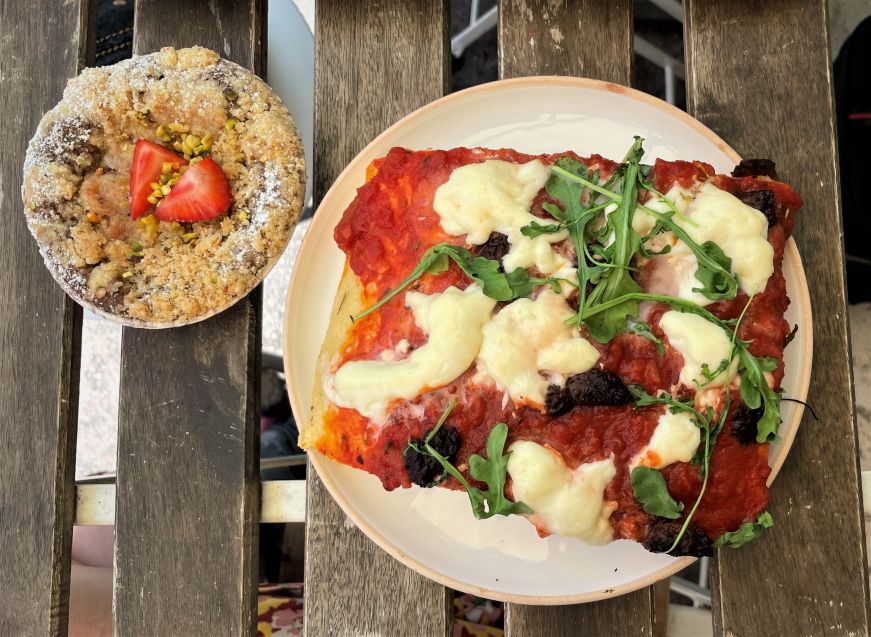 Maison Geney, located between the Panier District and the Old Port, is a convenient spot for lunch. The menu changes weekly and features sandwiches, salads, focaccia, and wraps, many of which are vegetarian. There's also a nice selection of pastries. I loved my vegetarian focaccia topped with tomato sauce, mozzarella, olives, and arugula, plus a pistachio-strawberry clafoutis for dessert. Mike got a tasty pulled pork sandwich on a roll that put American brioche buns to shame.