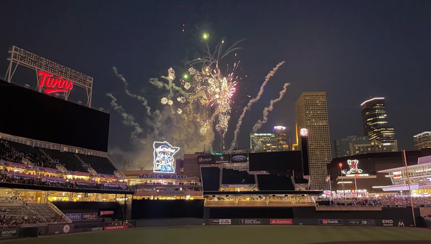 Fireworks at Target Field—we watched the Twins hit 4 homers and beat the White Sox