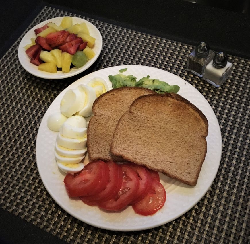 Over the course of my stay, I tried the two vegetarian options on the breakfast menu: a yogurt parfait with vanilla yogurt, fresh berries, and granola; and whole-wheat avocado toast served with hard-boiled eggs, tomato, and a side of fruit. Both were well-prepared and a good-sized portion for the price.